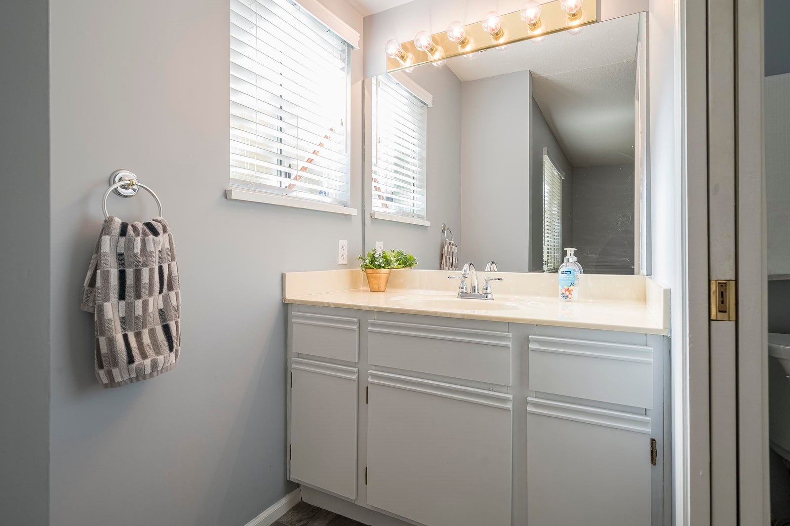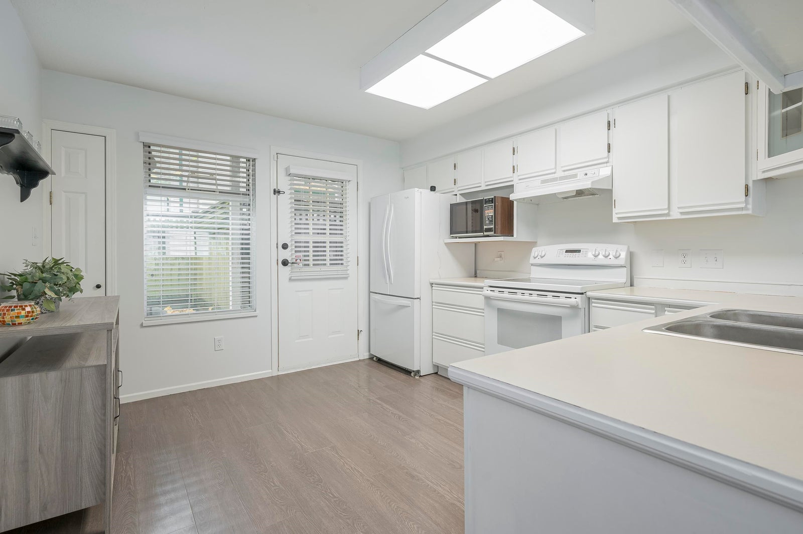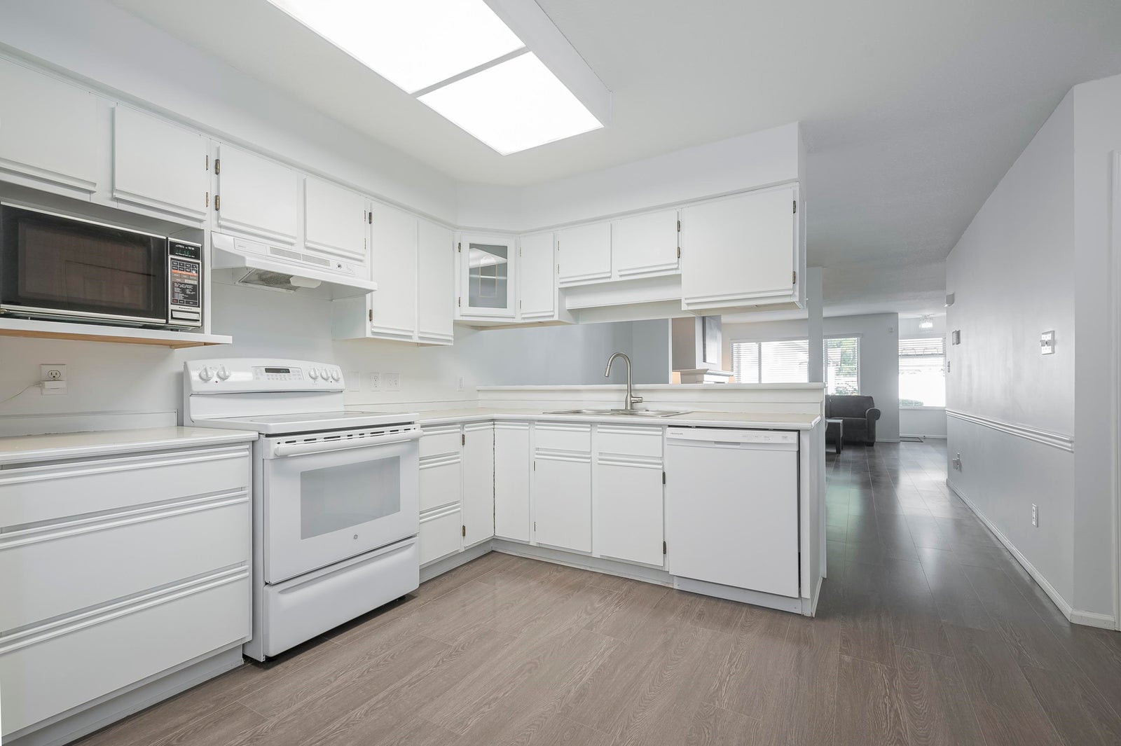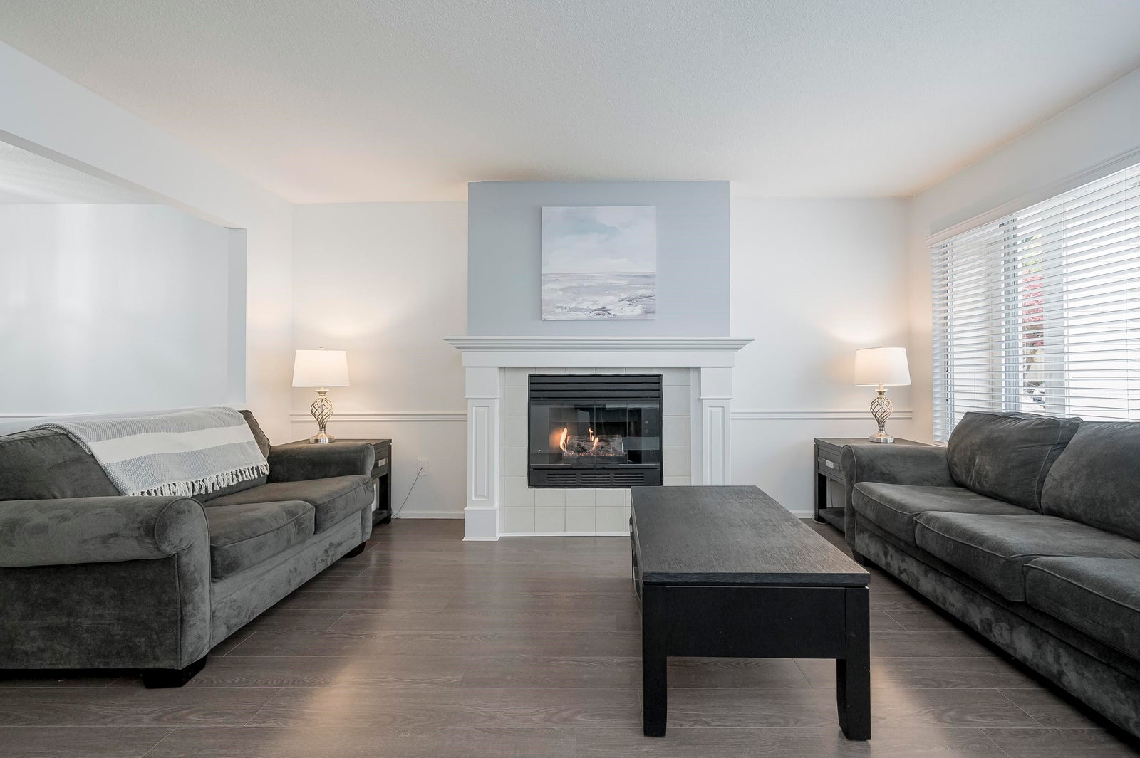 Welcome HOME 1218 SQ.FT townhome in the heart of Guildford. This bright and open 2-bed, 2-bath with your own garage, partially insulated and converted to flex room or bedroom not included in sq.ft. Bonus huge fully fenced back yard and additional parking space. Featuring a large living room gas fireplace with beautiful mantle and separate dining room. The spacious kitchen with newer appliances is very functional. Massive primary bedrooms with full ensuite walk in closet and patio door leading to yard. Located in a quiet, well-maintained community just minutes to Guildford Town Centre, parks, schools, and commuter routes. A wonderful opportunity.