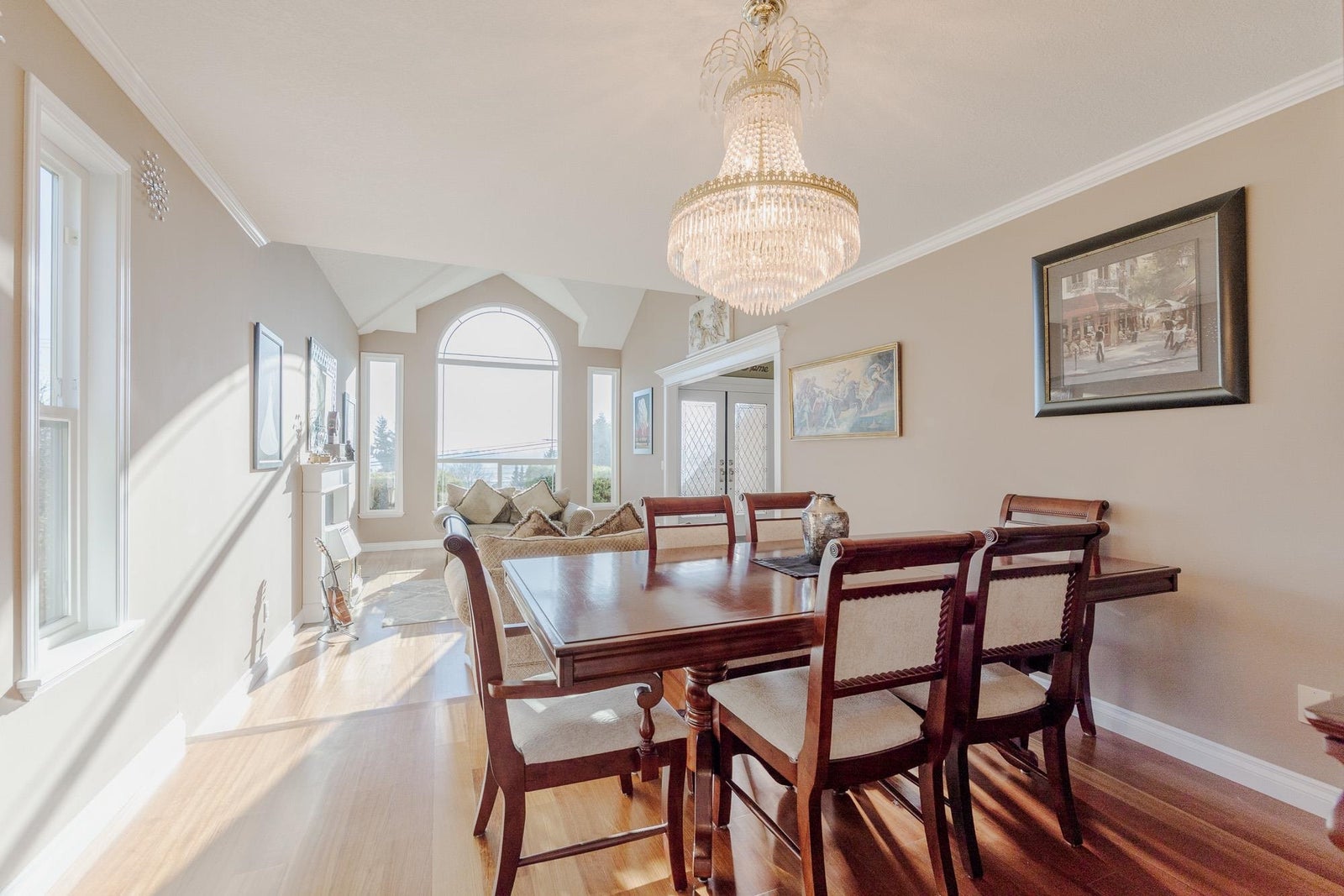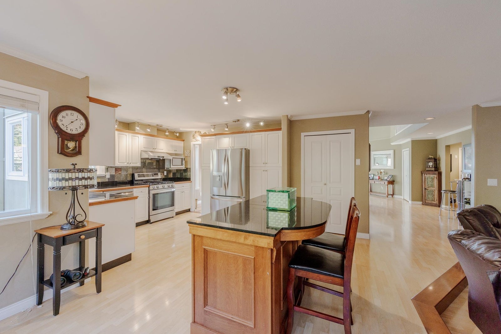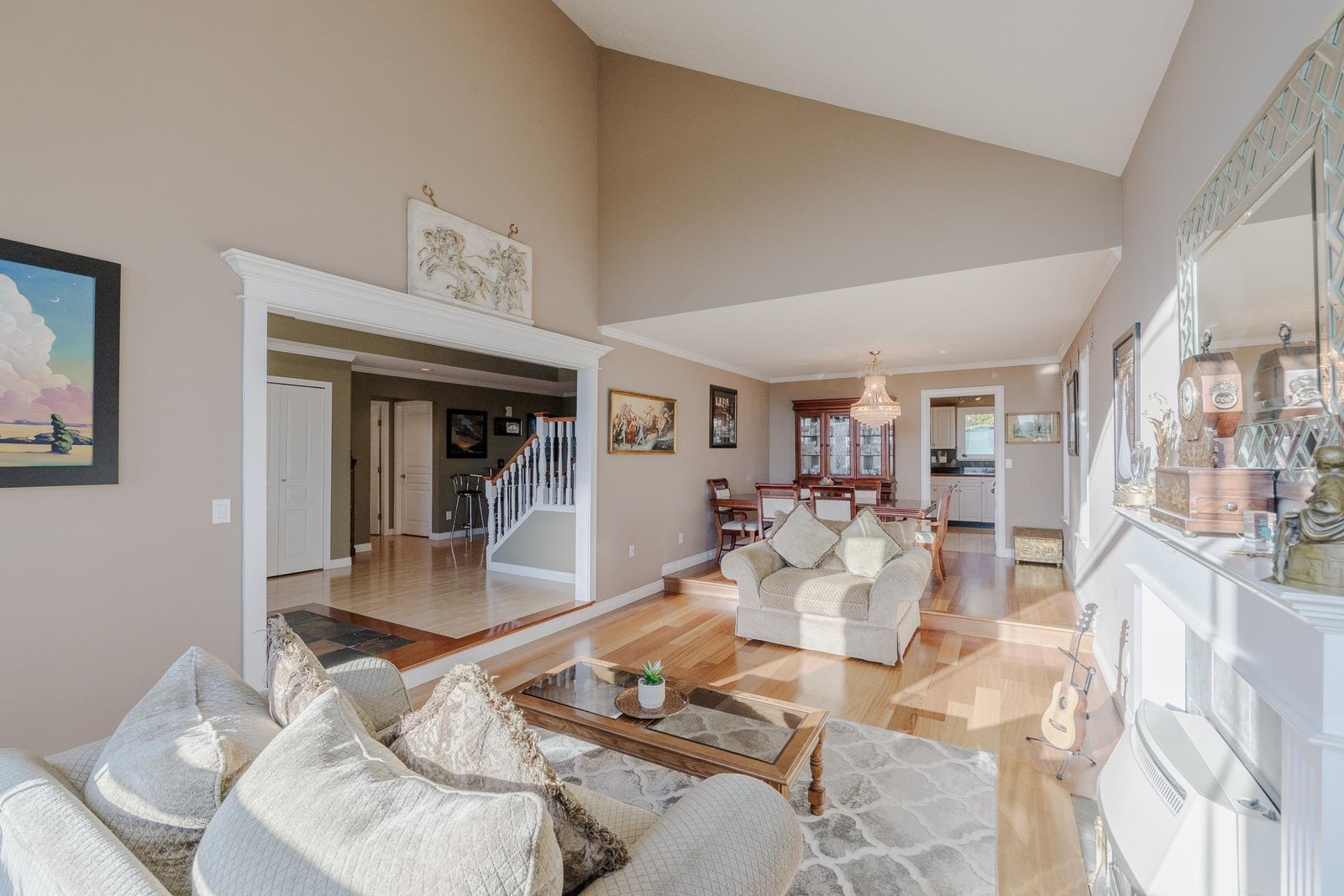 Hazelwood grove Beauty. Welcome to this Custom 2 story home featuring Grand entry open and spacious floor plan with Vaulted ceilings formal living and dining room with gas fireplace. Kitchen eating area family room combination looking over fully fenced private backyard with koi pond. Bonus Den and 3 pc bathroom on main floor. Upstairs with 4 spacious bedrooms Primary with 5 pc ensuite and walk in closet. Additional features: New roof, windows on demand hot water system and appliances. Panoramic views of Mt. Baker, the 18th fairway of Surrey Golf Course and the Serpentine Valley/Northview Golf and country club. All this and more walking distance to new skytrain station.