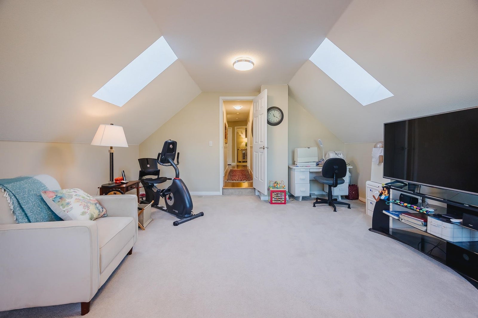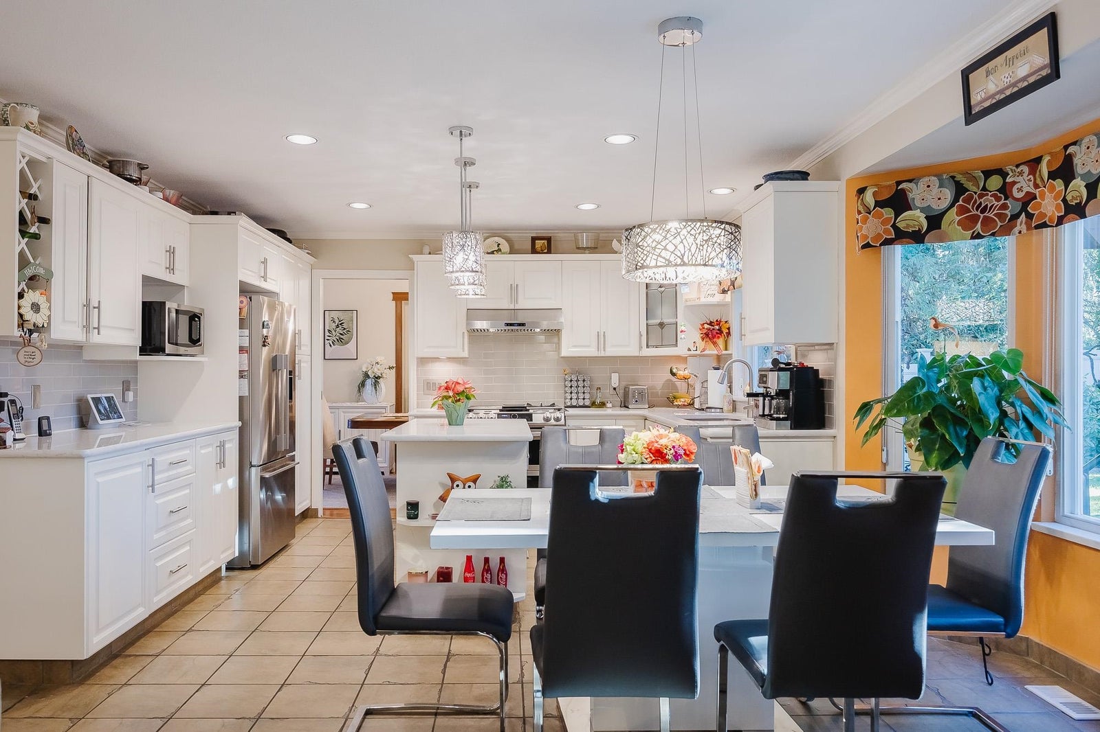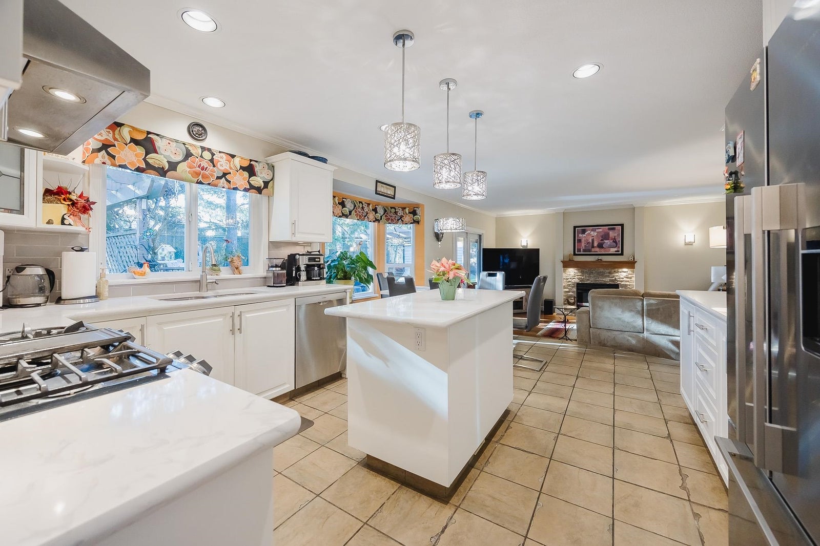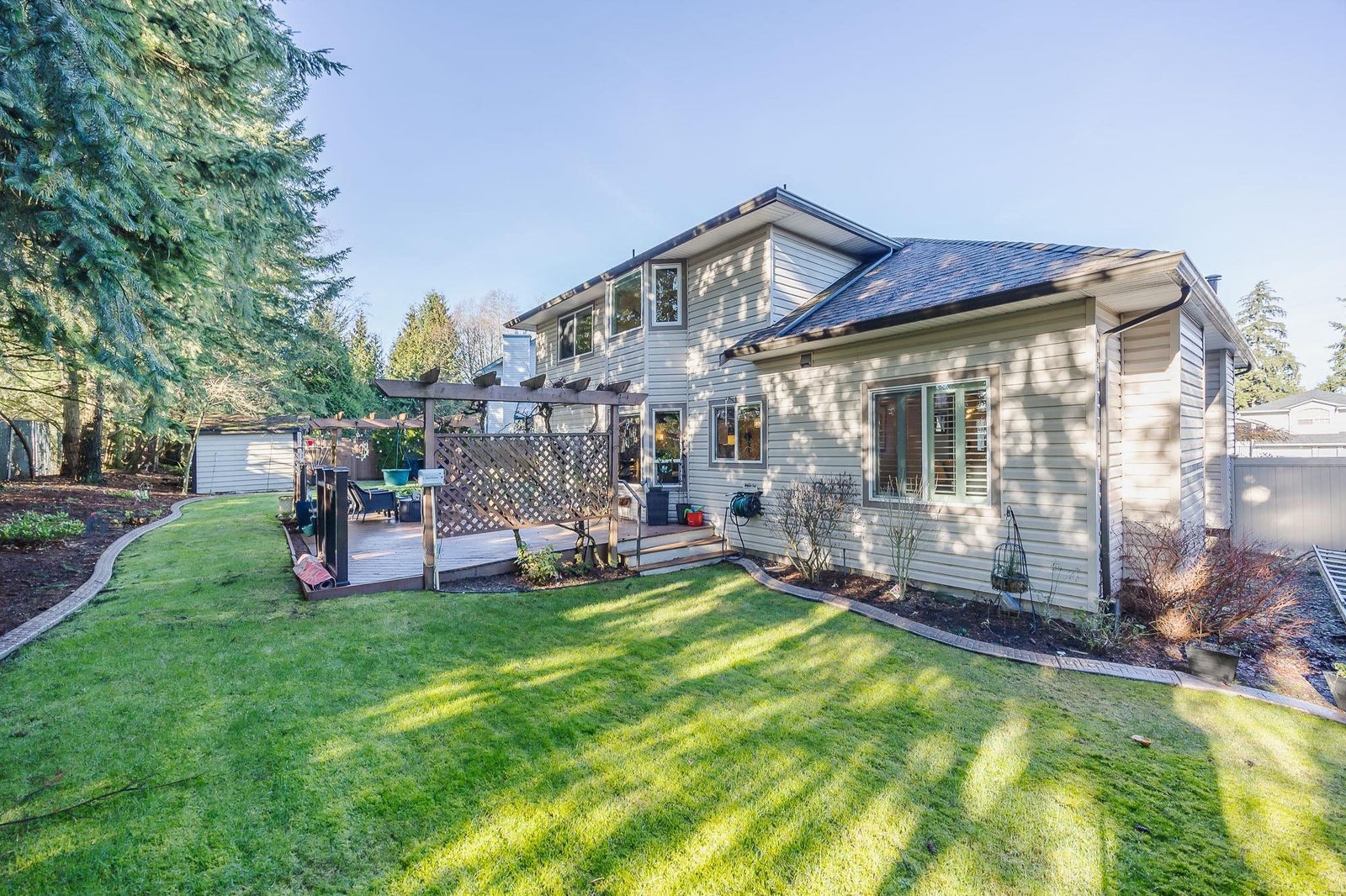 Welcome to this beautifully maintained Family home same owners for 35 yrs walking distance to the new skytrain station: Mn floor with Vaulted ceilings, living & dining room, new custom Canadian maple wood flooring & carpeting. Updated Kitchen with cabinets corian countertops tiled floors New Appliances Samsung 5 burner natural gas stove with cast iron griddle & double ovens, High End Fischer Paykel Fridge & quiet dishwasher. Family with Gas fireplace Double french doors leading to southern exposed 2 level wood composite 16x25 deck with retractable awning over BBQ area. Upstairs with 3 bedrooms & games room, Primary with 5 pc ensuite. Additional features: Updated Windows roof gutters, comfort toilets, high efficiency Furnace, air conditioning, Navien Hot water on demand, Built in vacuum ect